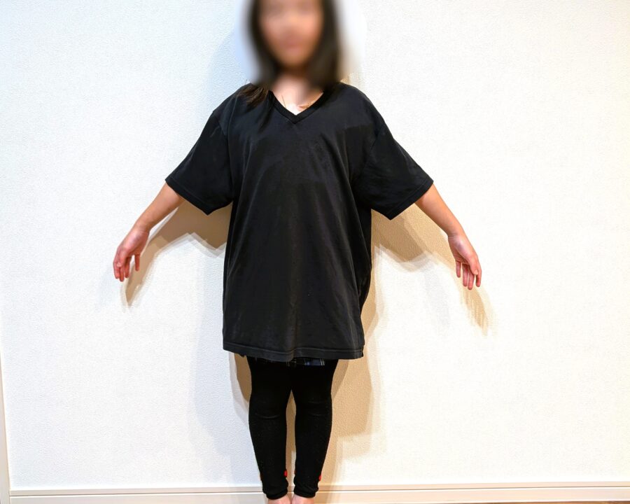 ちなみに今回使ったTシャツのサイズはLサイズ、子どもの背丈は120㎝です。