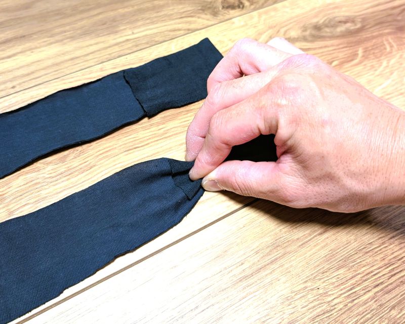 短め・細めのもので下の写真のように真ん中を巻きます。