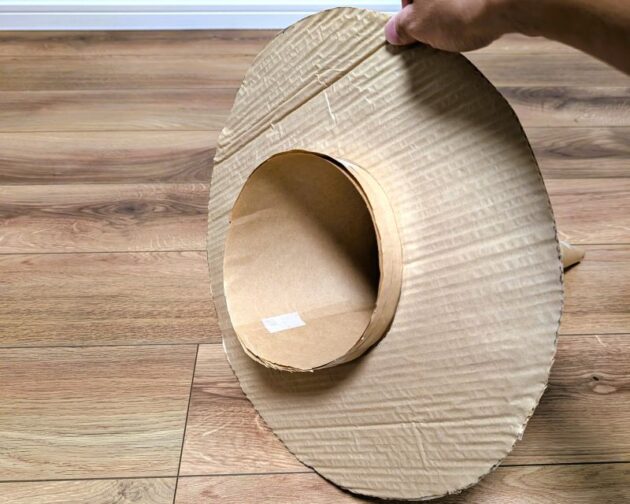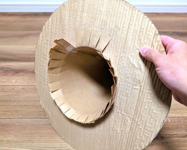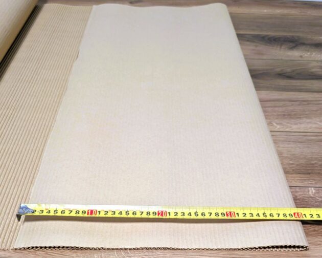 私はこのとき丁度いいダンボールがなかったので巻きダンボールを使っています。上にも書きましたが、サイズが合えばダンボール板を使ってください。接着する工程が省略できます。