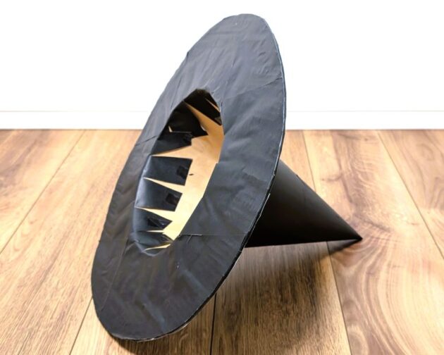 ダンボールを使って魔女の帽子を作ってみたい方や衣装作りの参考に、、、なるかどうか自信はないのですが、ほんの少しでもだれかの参考になれば幸いです。