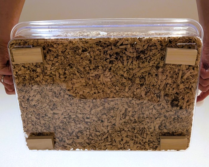 これで畳に直接ヒーターを置かずに済みます。ケージ自体のかさ上げもしたのでヒーターを置くまで入れられるようにもなりました。